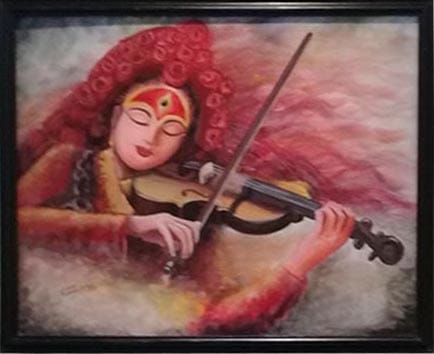 Goddess Kumari playing violin. 20×30 inch, acrylic on canvas