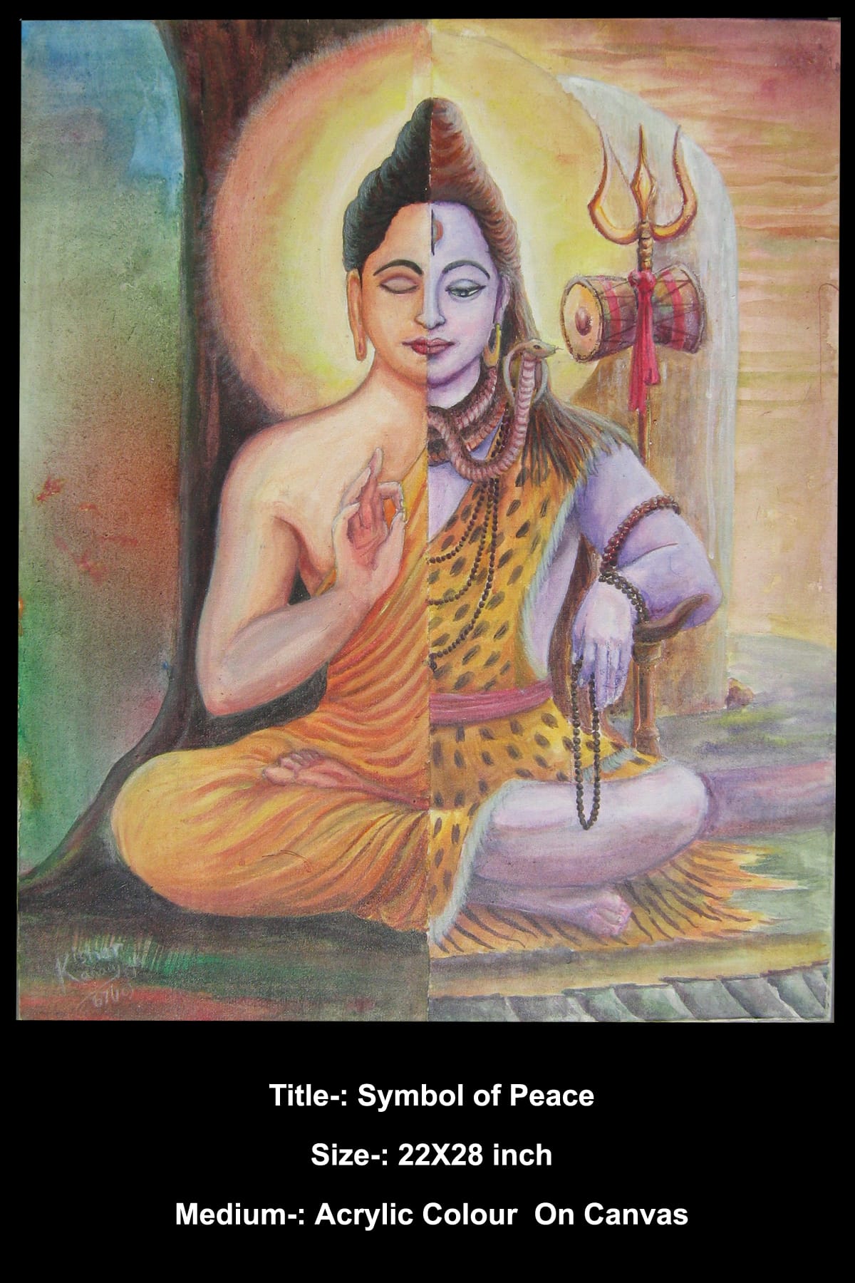 symbol of peace, acrylic on canvas, half buddha and half God shiva.